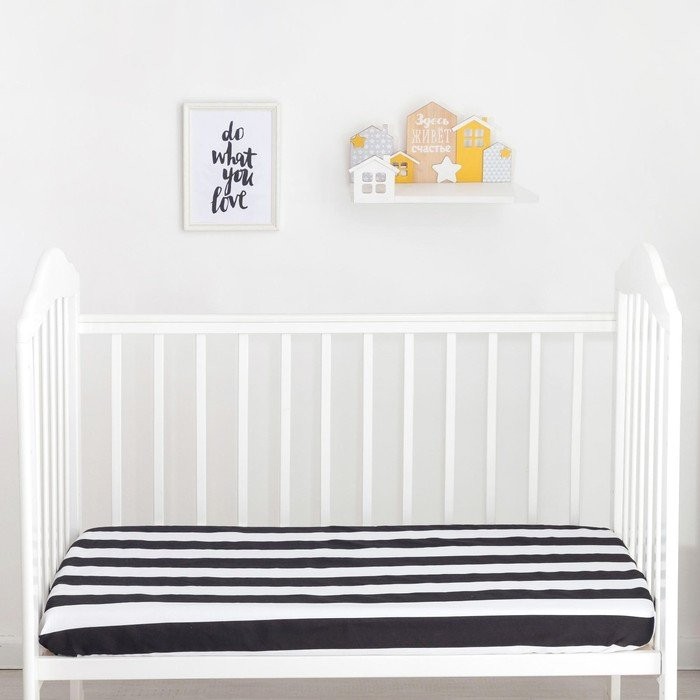 Простыня на резинке Крошка Я «Полоски» 60×120+20см, бязь,100% хлопок