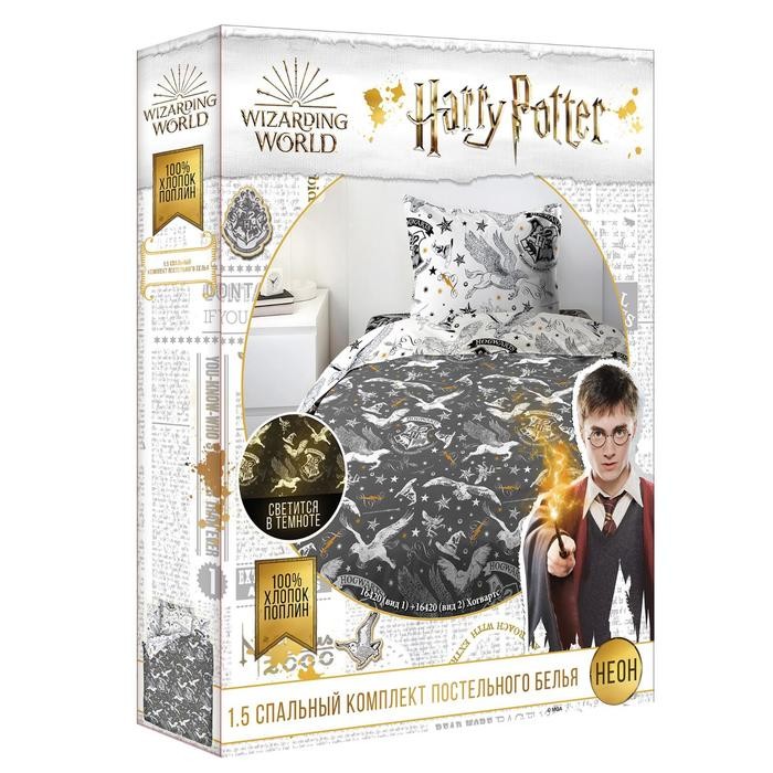 Постельное бельё 1.5 Гарри Поттер Neon «Хогвартс» 143×215, 150×214, 70х70см-1шт