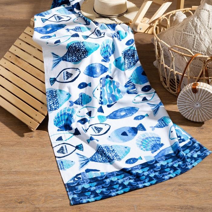 Полотенце «Рыбы» 70*140 см, велюр/махра 350гр/м2, 100% хлопок