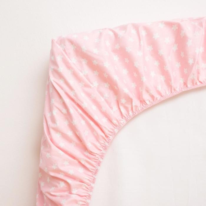 Простыня на резинке «LoveLife» Розовые звездочки 60*120+20 см, 100% хлопок, сатин