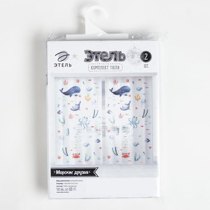 Комплект тюлей «Этель» Морские друзья, 145*260 см-2 шт, вуаль