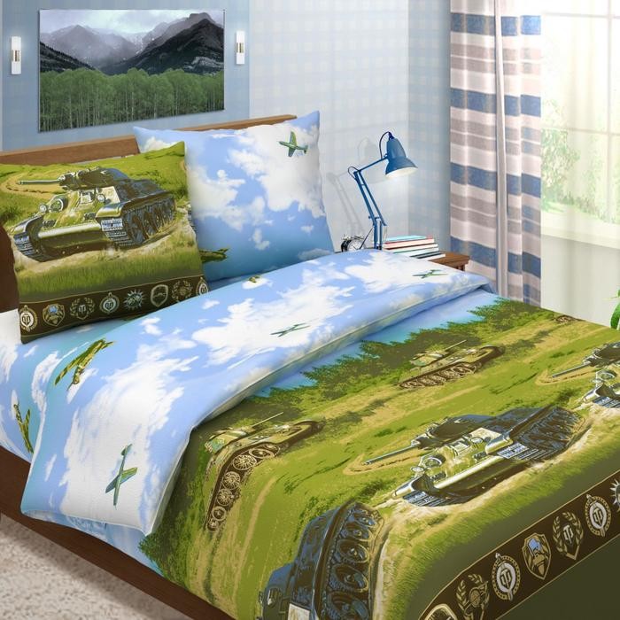 Постельное бельё евро «Традиция: Танки» 200×217, 220×240, 70×70 см 2шт