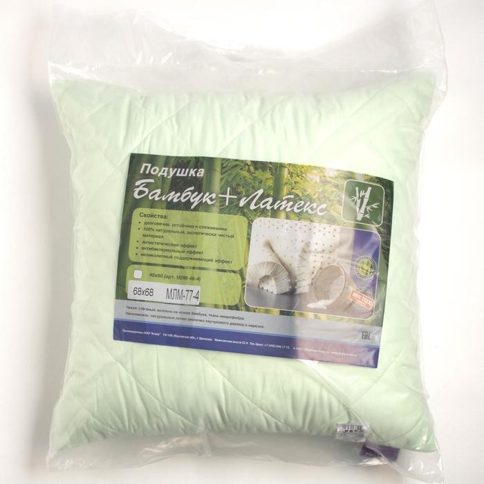 Подушка Бамбук+Латекс высокая 68×68 см зел., бамбуковое волокно/натур.латекс, микрофибра, пэ