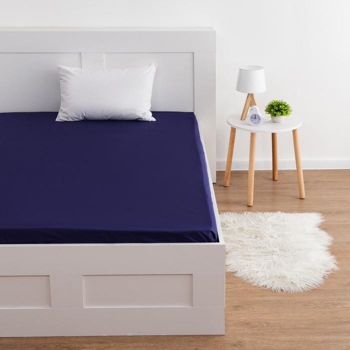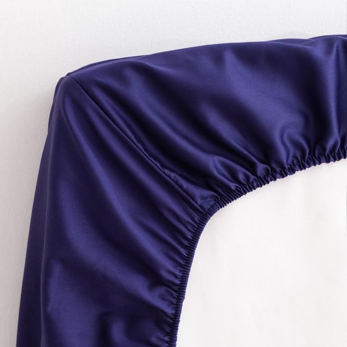 Простыня на резинке Этель 160*200*25 см, цв. темно-синий, 100% хлопок, мако-сатин, 128 г/м²