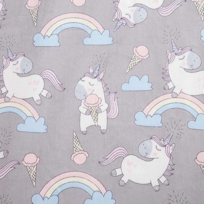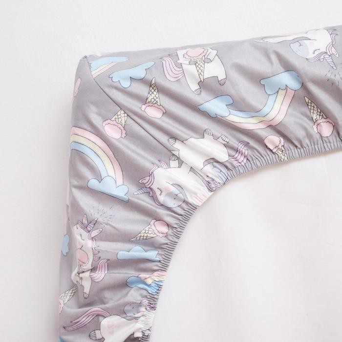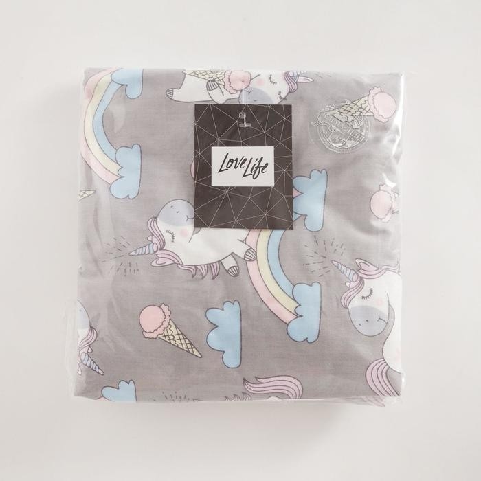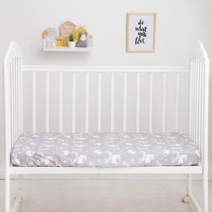 Простыня на резинке «LoveLife» Серые единороги 60*120+20 см, 100% хлопок, сатин