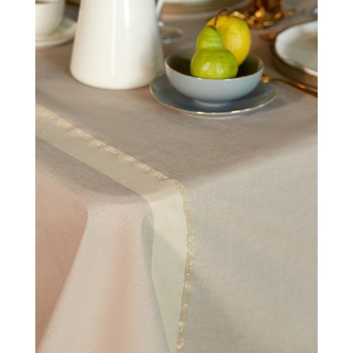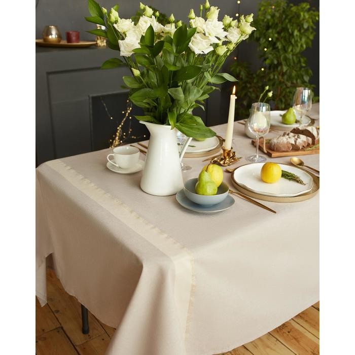 Скатерть Этель 240×165 см, цв. кофейный с золотой нитью, 100% хлопок, 163 г/м2
