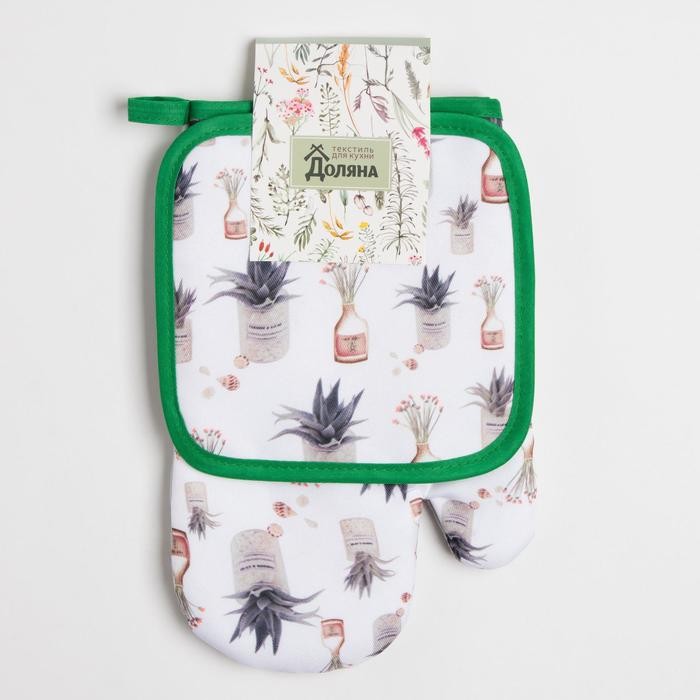 Кухонный набор Доляна «Цветы», прихватка 17*17 см, рукавица 26*16 см,100% п/э