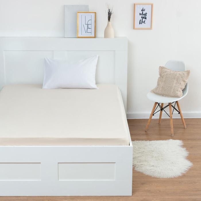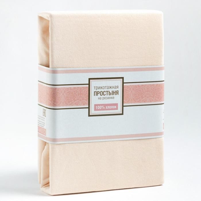 Трикотажная простынь на резинке 160х200х25см, бежевый кулирка