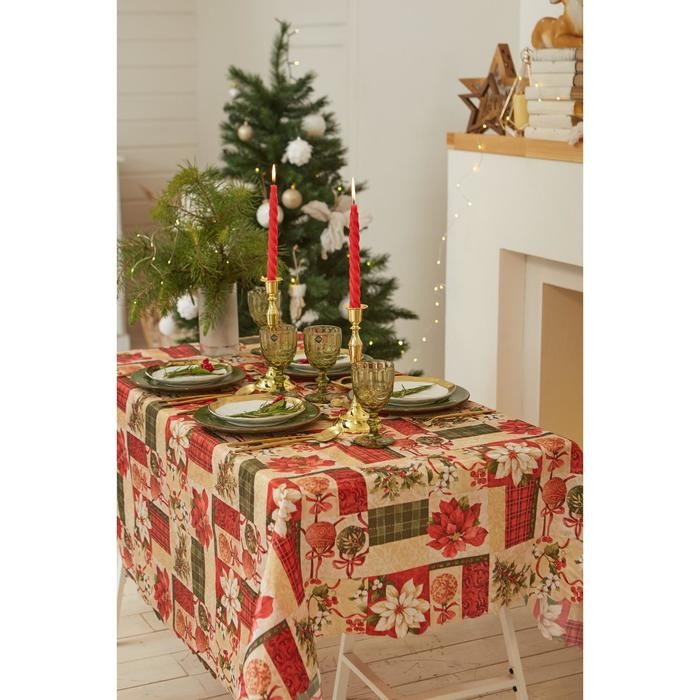 Скатерть Доляна «Новый год: Новогодние игрушки» 145*300 +/- 2 см, 100% п/э