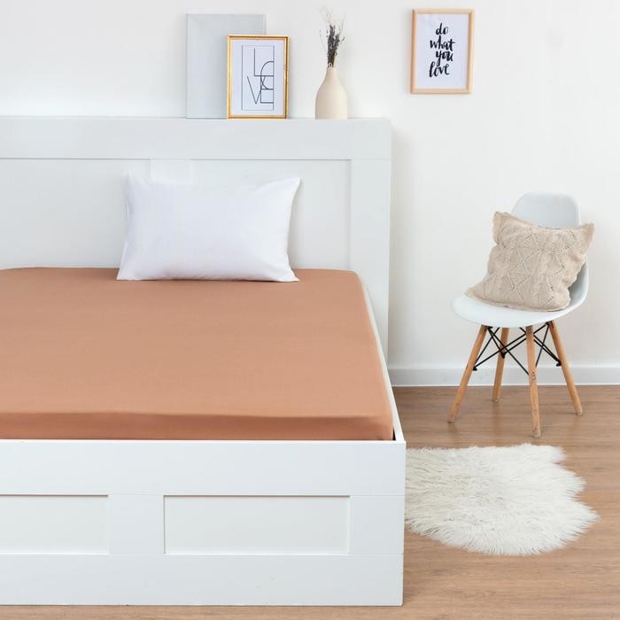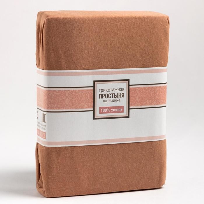 Простыня на резинке трикотажная, размер 90х200х25см, цвет коричневый, кулирка 120г/м², 100% хлопок