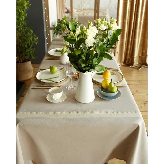 Скатерть «Этель» 110×165 см, цв. кофейный с золотой нитью, 100% хлопок, 163 г/м2