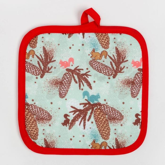 Кухонный новогодний набор Доляна «Шишки», прихватка 17*17 см, вареж. 26*16 см,100% п/э