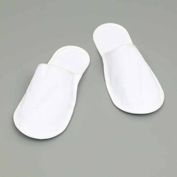 Одноразовые тапочки, 42 размер, махровые, эконом, белые, закрытый мыс