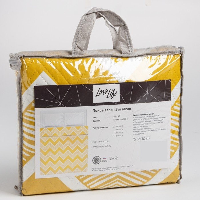 Покрывало LoveLife евро «Зигзаги» цв. желтый, 200*210±5см, микрофайбер, 100% п/э