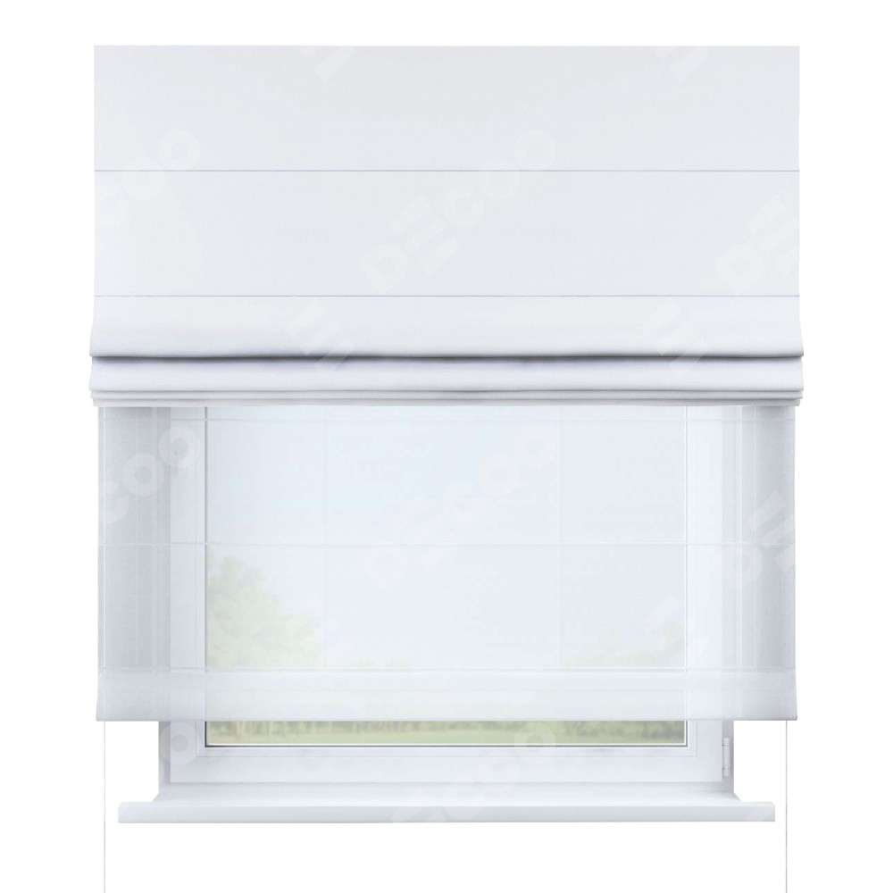 Римская штора день-ночь производителя «Cortin», используется для проёма, пошита из двух полотен, с лицевой стороны вельвет белый артикул 10810, вторая ткань тюль (по стандарту комплектуется тюль белого цвета артикул V-01). Имеет универсальный механизм и подходит для монтажа: на потолок, на стену и в нишу.
