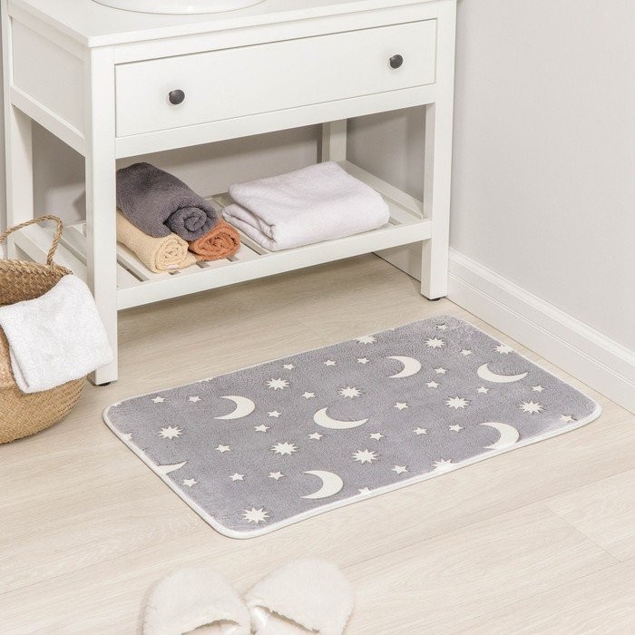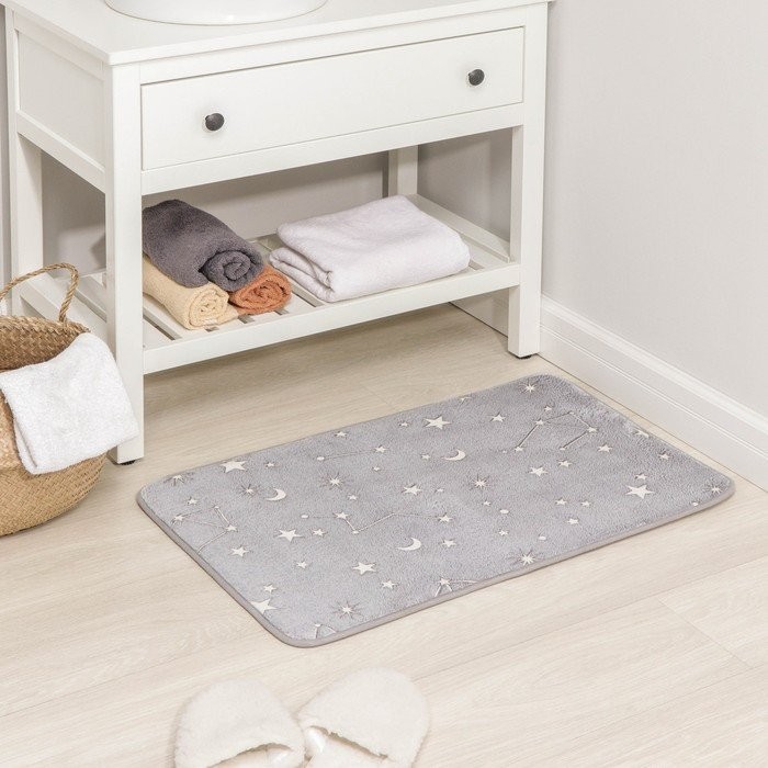 Коврик Доляна «Светящиеся звёзды», 50×80 см, цвет серый, рисунок МИКС