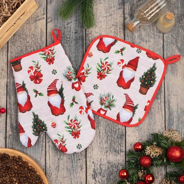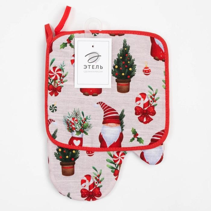 Набор Santa Claus варежка-прихватка 20х28см, прихватка 19х19см, 100% хл, ватин 250г/м2