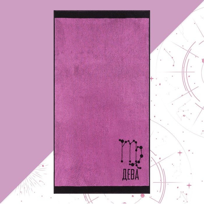 Полотенце махровое Этель «Знаки зодиака: Дева» розовый, 67×130 см, 420 гр/м2, 100% хлопок