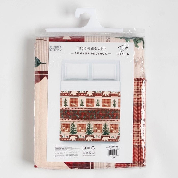 Покрывало «Этель» евро Зимний рисунок, 210*215 см, 100% хлопок