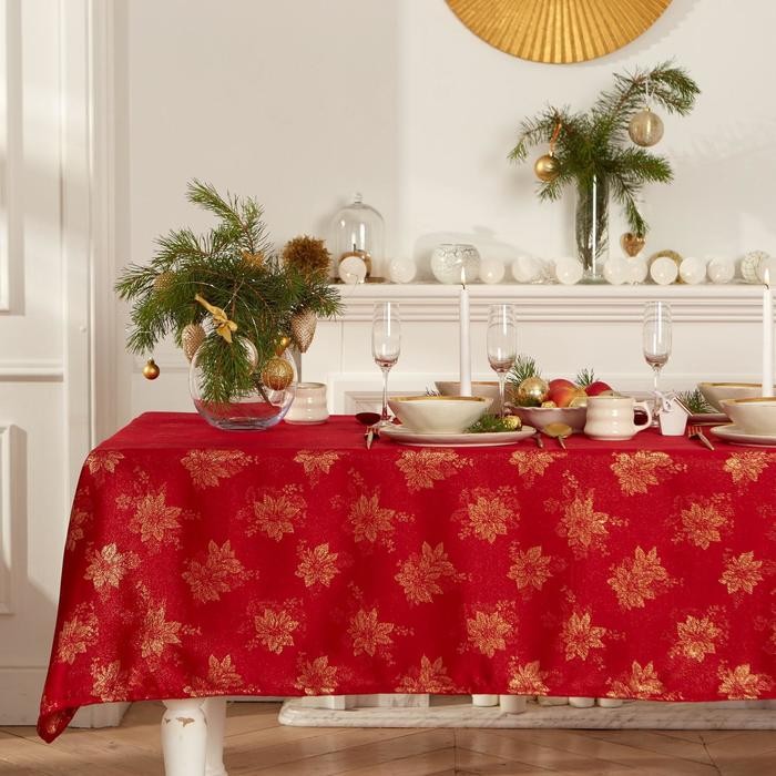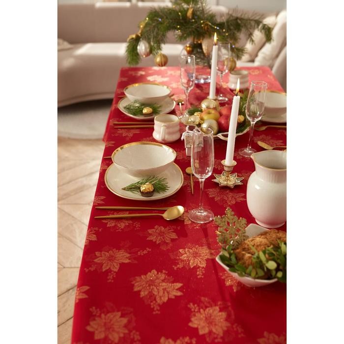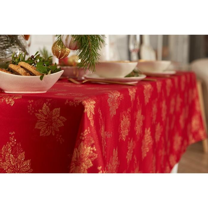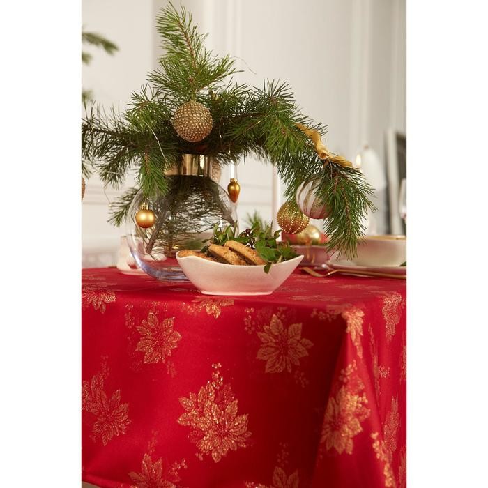 Скатерть Этель «Пуансеттия» цв.красный, 142*180 +/-3 см, 115 ±10 гр,100% п/э