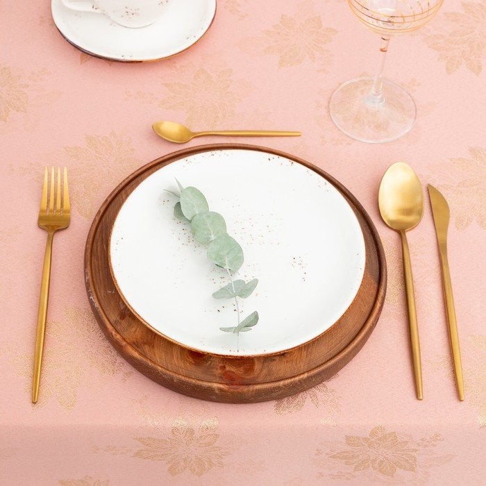 Скатерть Этель «Пуансеттия» цв.розовый, 142*110 +/-3 см, 115 ±10 гр,100% п/э