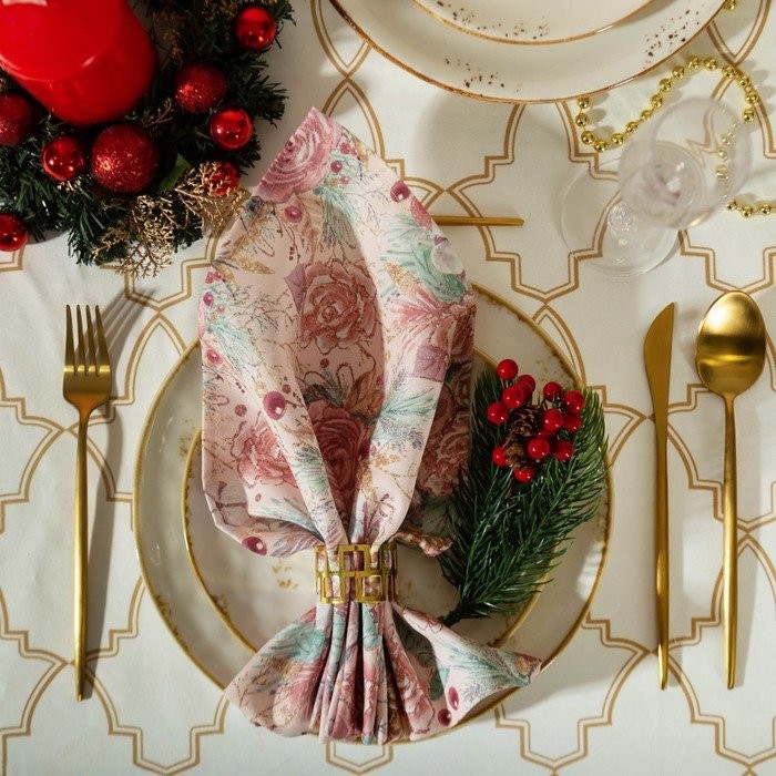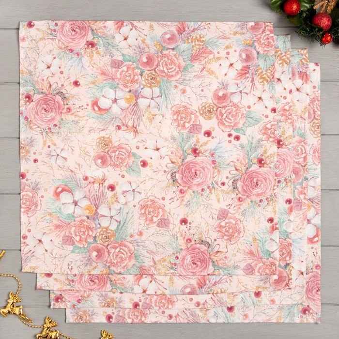 Набор новогодних салфеток Этель «Pink magic» 46×46 см — 4шт., 100%хл, саржа 190 г/м2