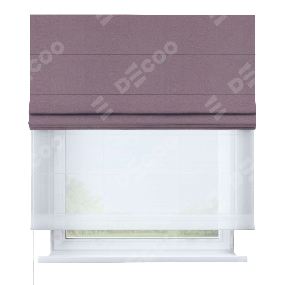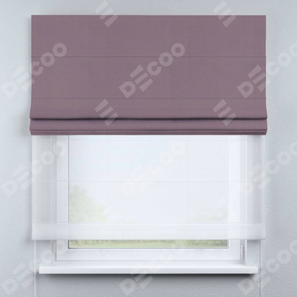 Римская штора день-ночь производителя «Cortin», используется для проёма, пошита из двух полотен, с лицевой стороны блэкаут однотонный брусника артикул 88302, вторая ткань тюль (по стандарту комплектуется тюль белого цвета артикул V-01). Имеет универсальный механизм и подходит для монтажа: на потолок, на стену и в нишу.