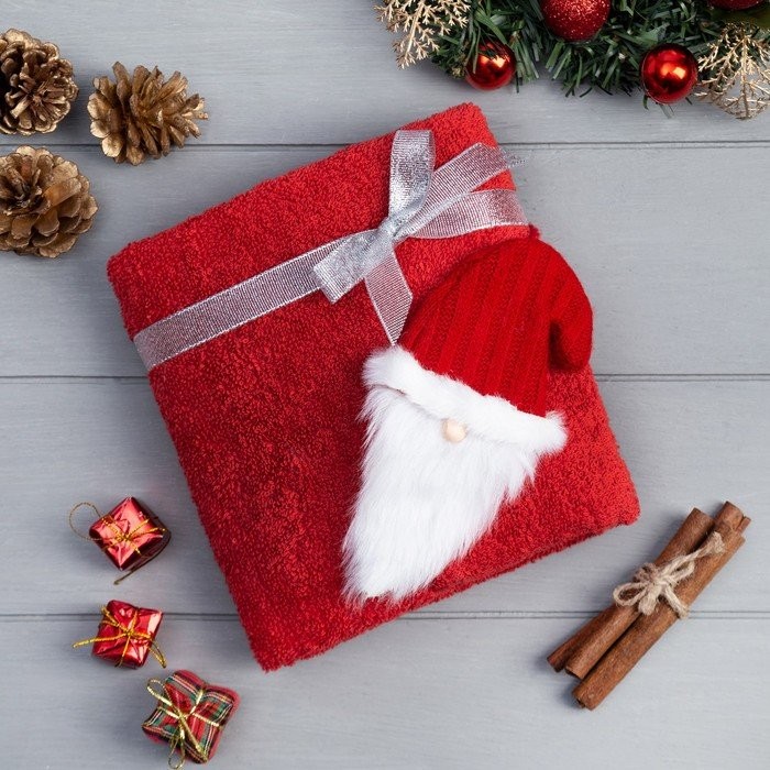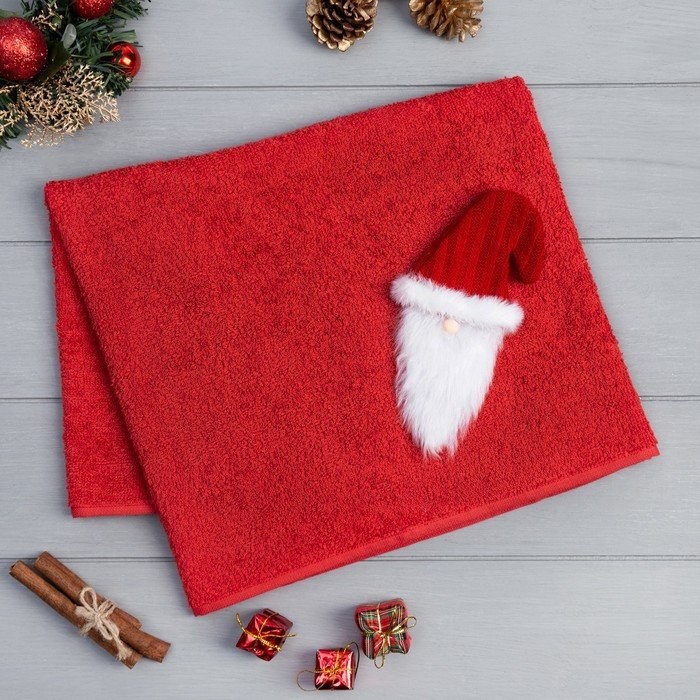 Подарочное полотенце с игрушкой Этель «Дед Мороз» 50×90 см, цвет бордовый, 100% хл