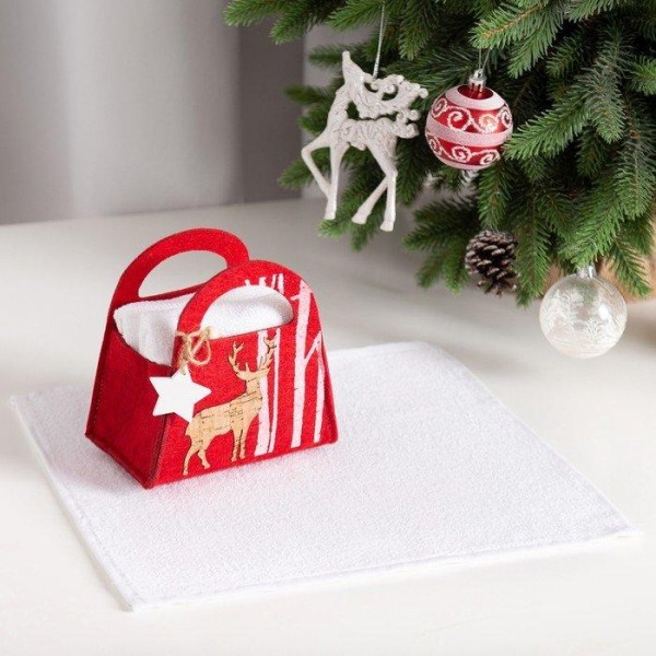 Набор полотенец в корзинке Экономь и Я «Снежный лес» Вид 1, 30×30 см-2 шт, 100% хл, 320г/м2