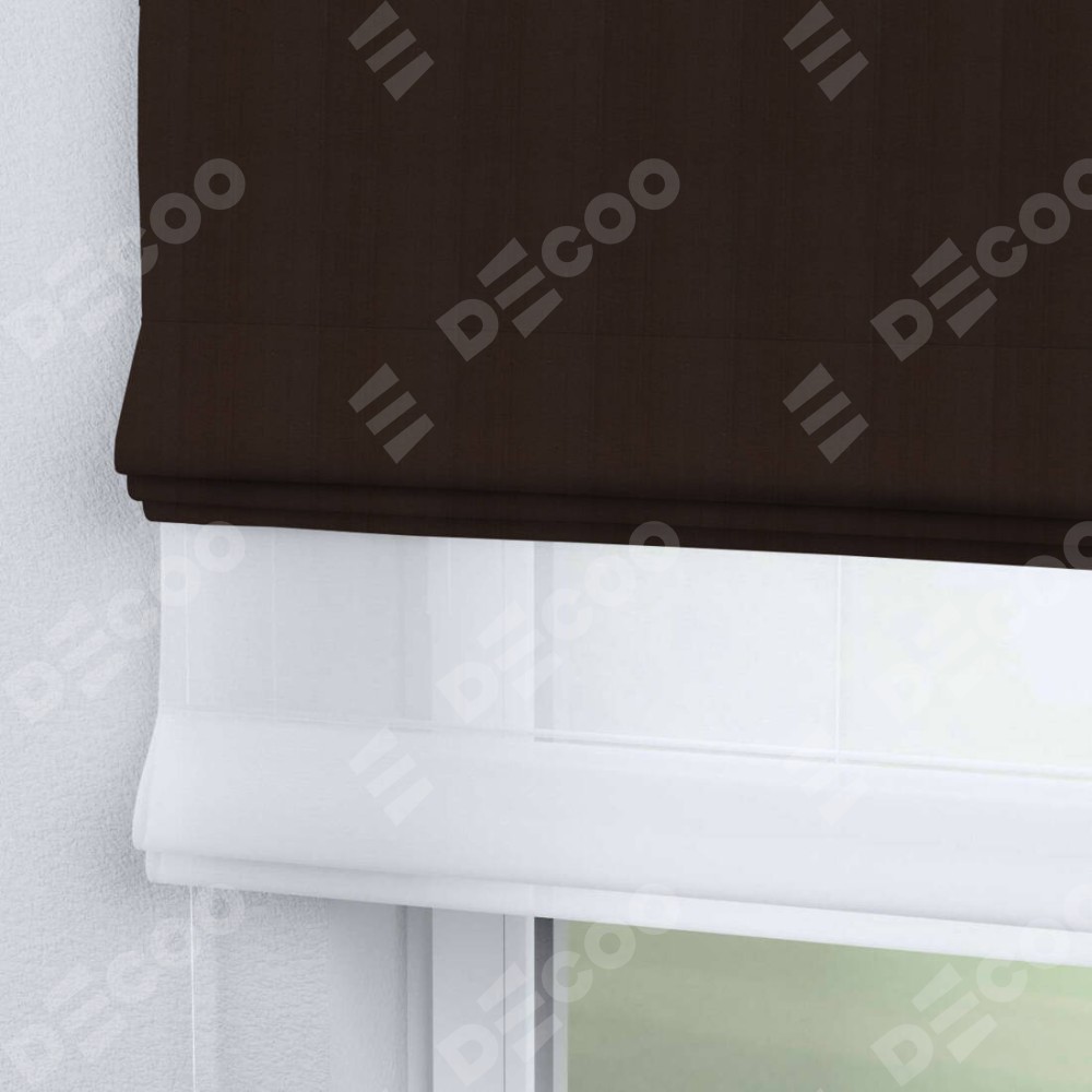 Римская штора день-ночь производителя «Cortin», используется для проёма, пошита из двух полотен, с лицевой стороны блэкаут однотонный тёмно-коричневый артикул 88287, вторая ткань тюль (по стандарту комплектуется тюль белого цвета артикул V-01). Имеет универсальный механизм и подходит для монтажа: на потолок, на стену и в нишу.