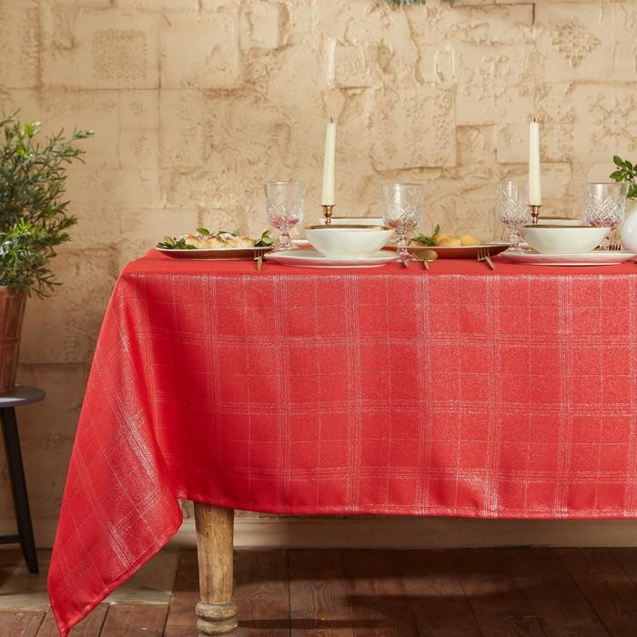Скатерть Этель «Клетка» цв.серебро, 142*283 +/-3 см, 115 ±10 гр,100% п/э