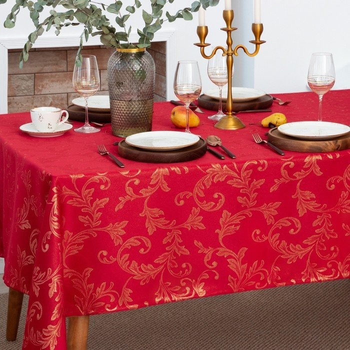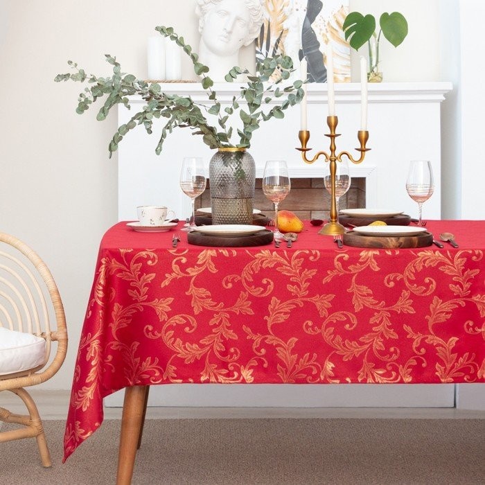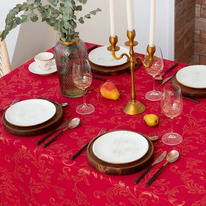 Скатерть Этель «Patterns» цвет красный, 142*110 +/-3 см, 115 ±10 гр,100% п/э