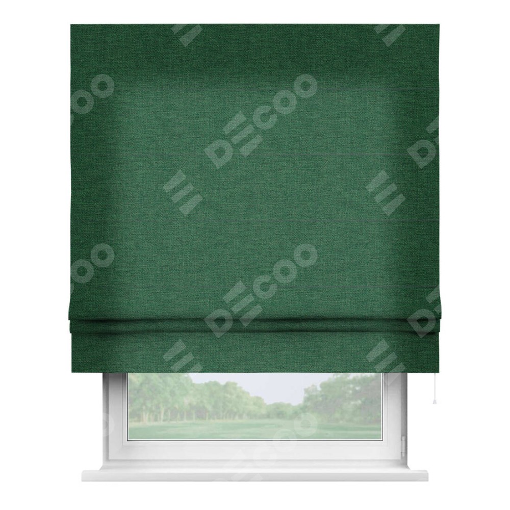 Римская штора производителя «Cortin», используется для проёма, пошита из ткани лён серо-зелёный, артикул ткани 63740. Имеет универсальный механизм и подходит для монтажа: на потолок, на стену и в нишу.
