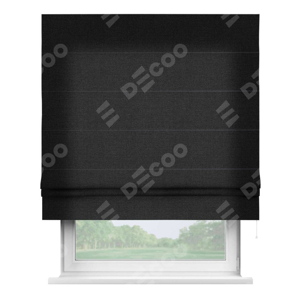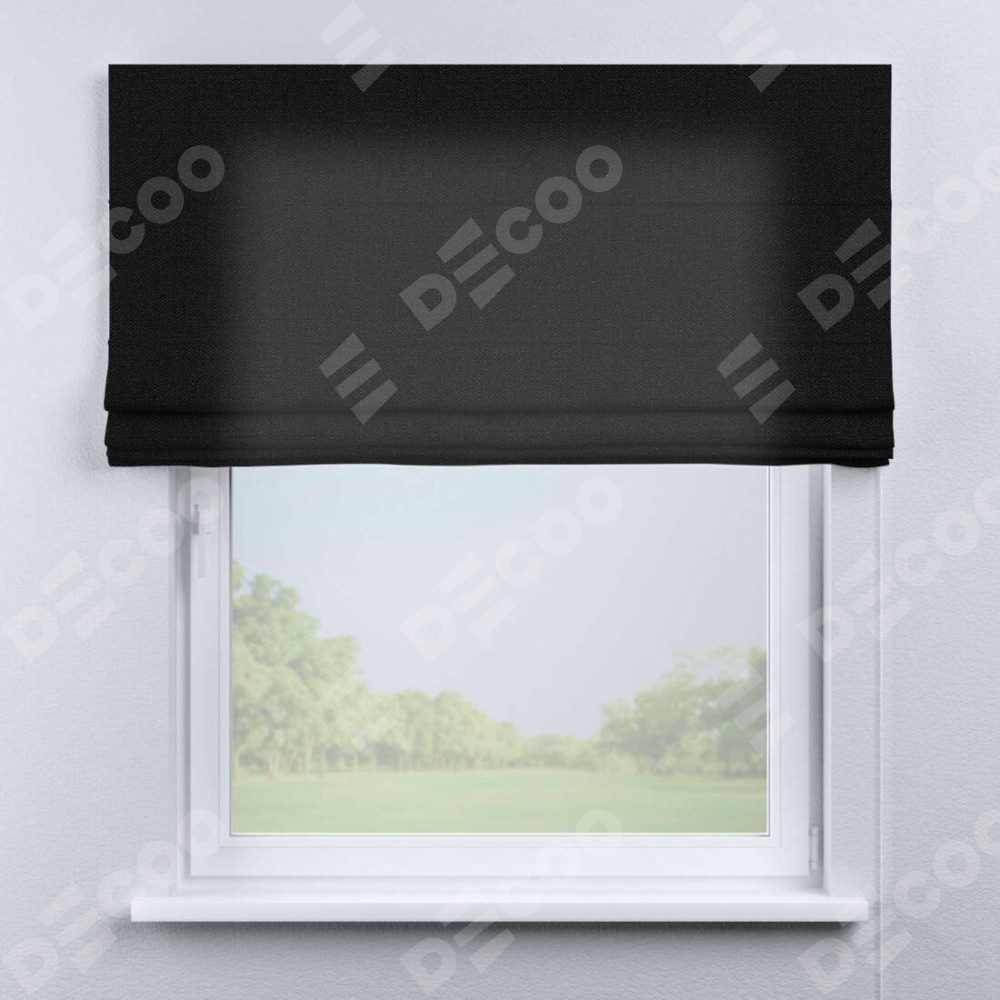 Римская штора производителя «Cortin», используется для проёма, пошита из ткани лён чёрный, артикул ткани 85927. Имеет универсальный механизм и подходит для монтажа: на потолок, на стену и в нишу.