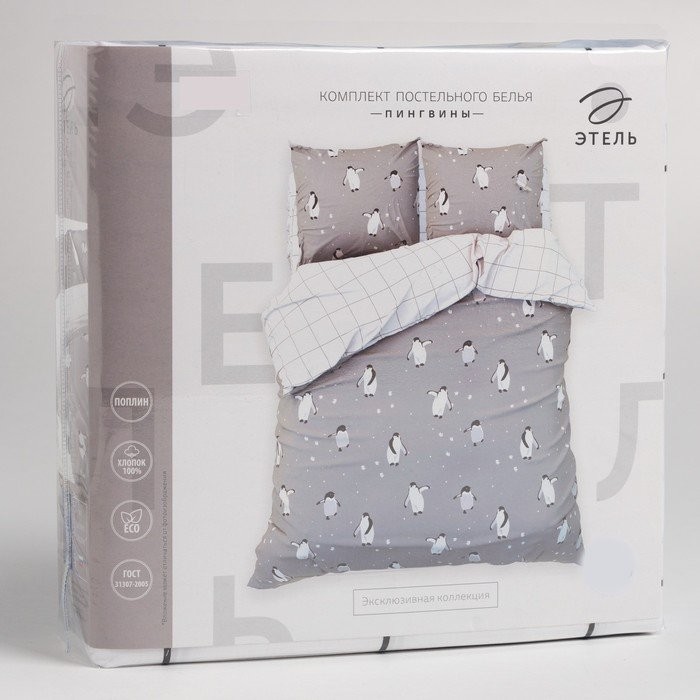 Постельное белье Этель 1.5 сп «Пингвины» 143*215 см, 150*214 см, 70*70 см — 2 шт