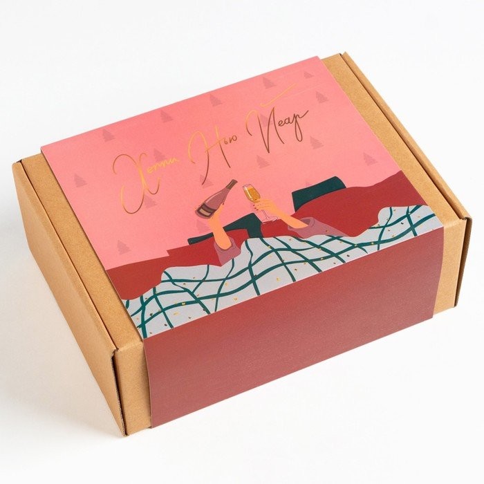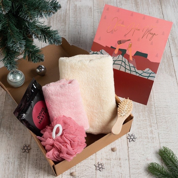 Новогодний подарочный набор «Хэппи нью йеар» полотенце 50х90см,30х60см и аксессуары (5 предм)