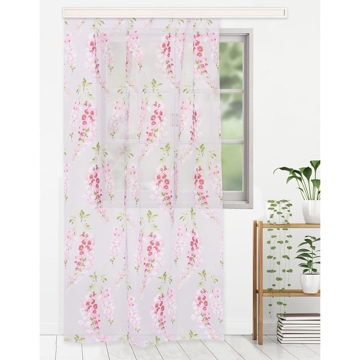 Тюль «Этель"Виноградная лоза (розовый) б/ утяжелителя, ширина 140 см, высота 250 см