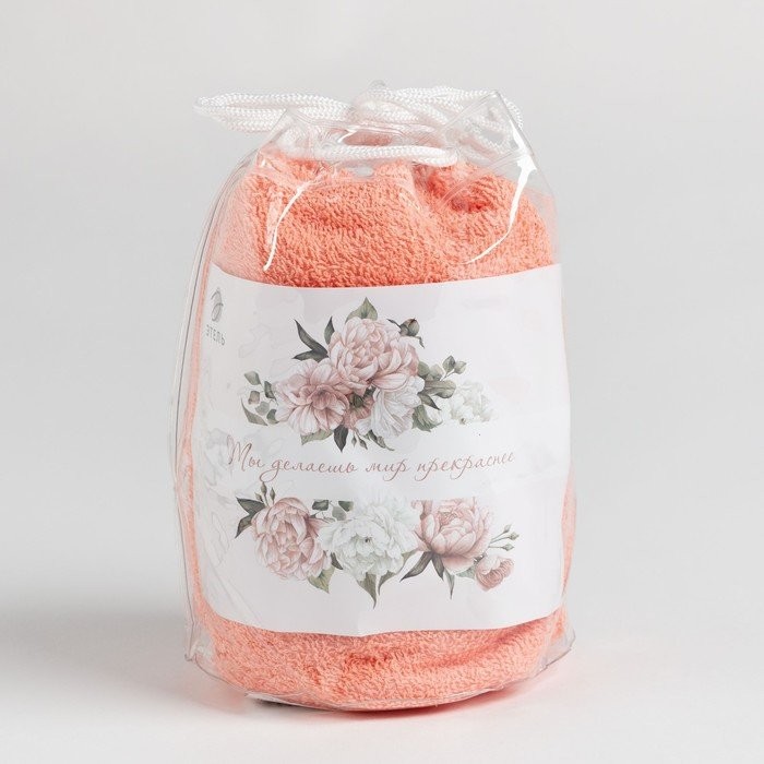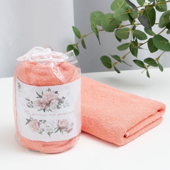 Полотенце подарочное Этель «Ты делаешь мир прекраснее» персиковый, 50х90см, 100%хл,340г/м2