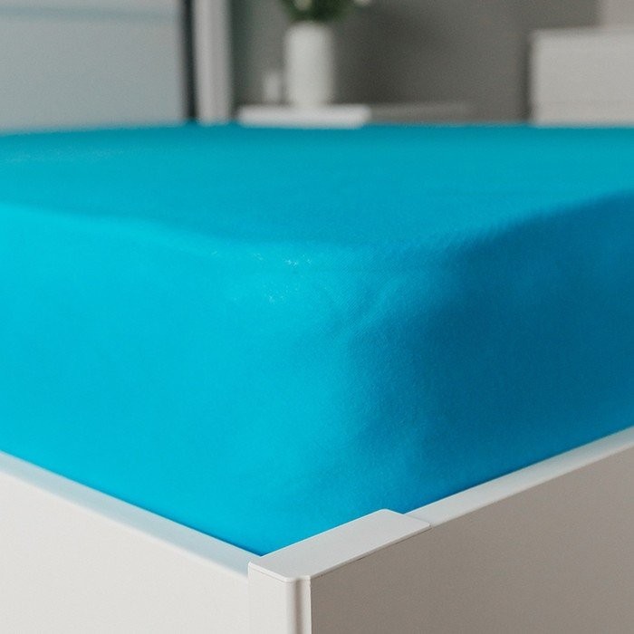 Трикотажная простынь на резинке 140х200х25см, синий кулирка, 120г/м хл100%