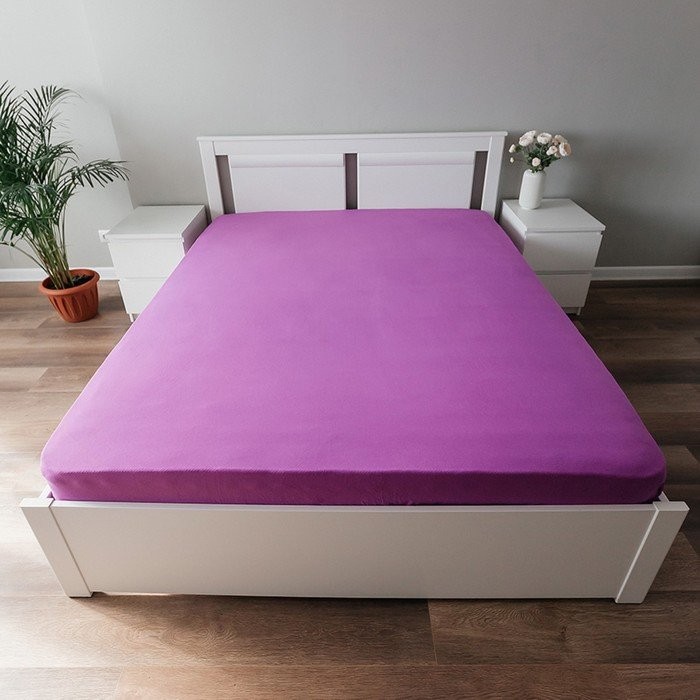 Трикотажная простынь на резинке 140х200х25см, фиолетовый кулирка, 120г/м хл100%