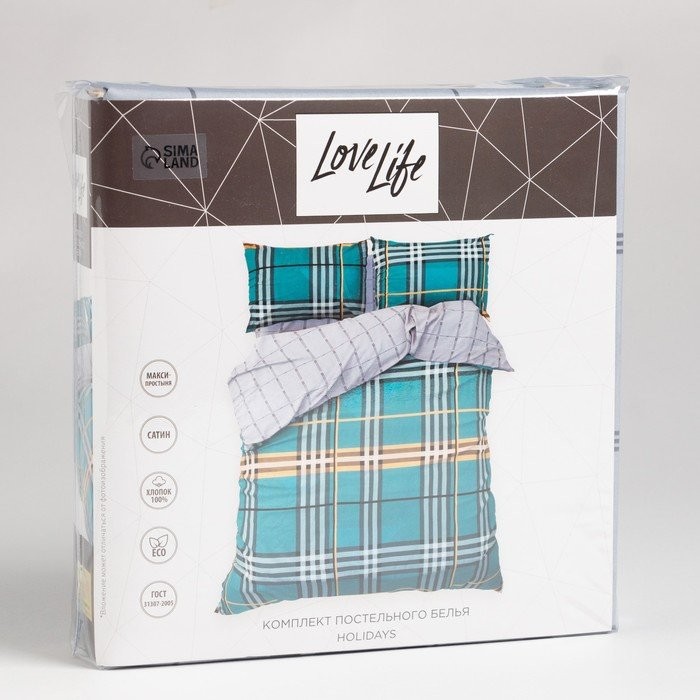 Постельное белье LoveLife евро «Holidays» 200*217см,225*240см,50*70см-2шт,100%хлопок,сатин,125г/м²