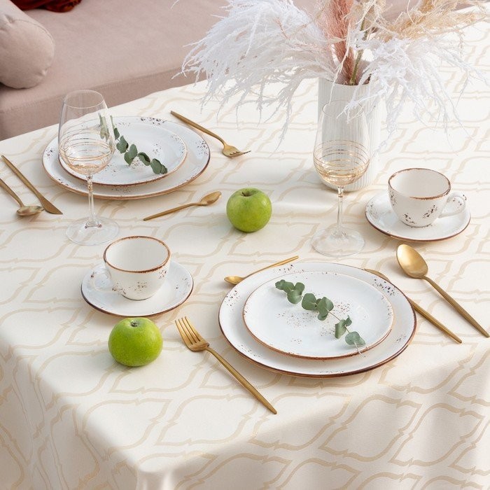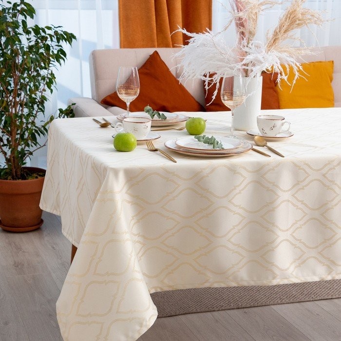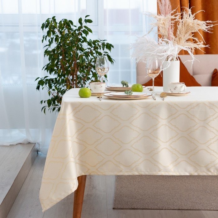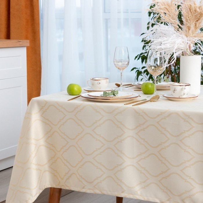 Скатерть Этель «Ажур» цв.бежевый, 142*110 +/-3 см, 115 ±10 гр,100% п/э