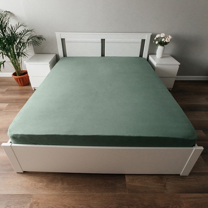 Простыня на резинке трикотажная, размер 200х200х25см, цвет хаки, кулирка 120г/м², 100% хлопок