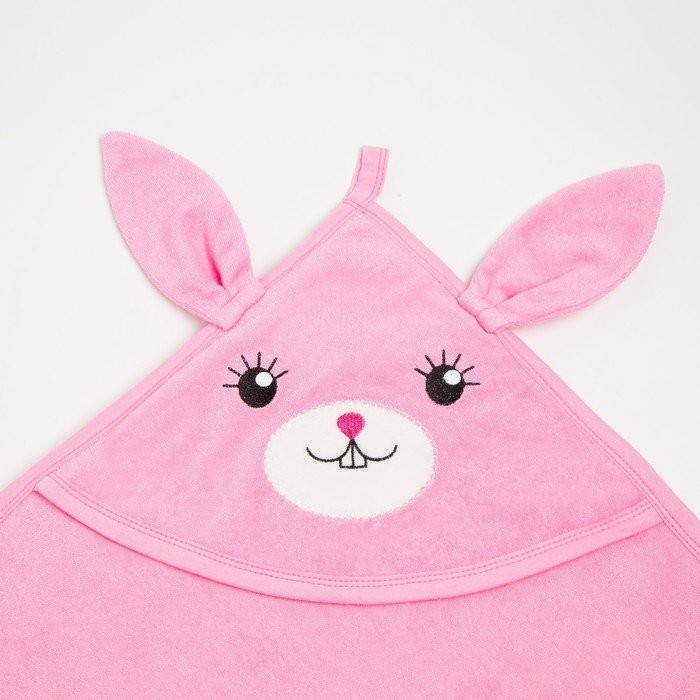 Набор для купания (полотенце уголок, рукавица) Зайка цв. Розовый 92х96см махра, хл100%