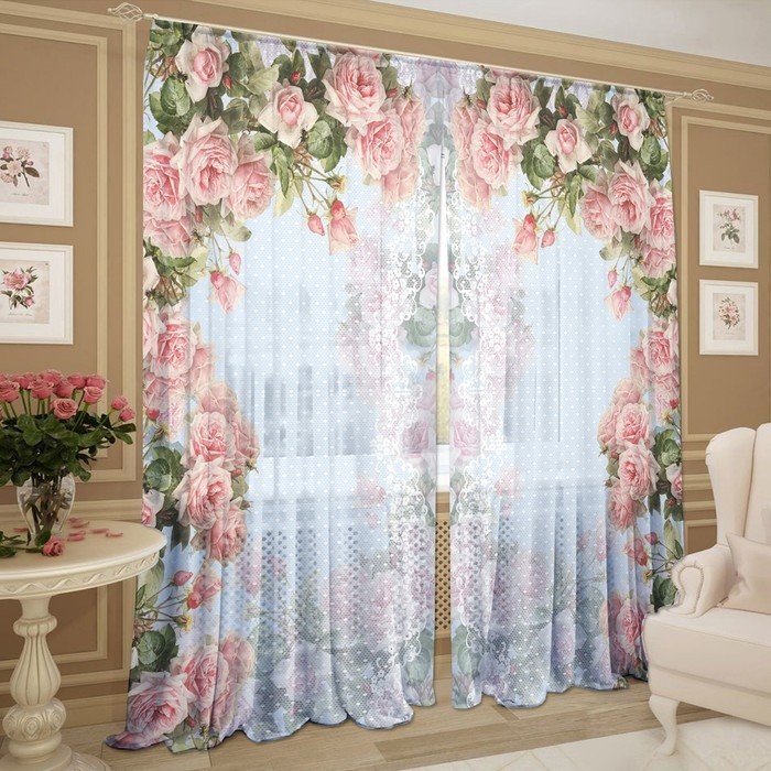 Тип тюли: Готовый, С рисунком, С цветами
