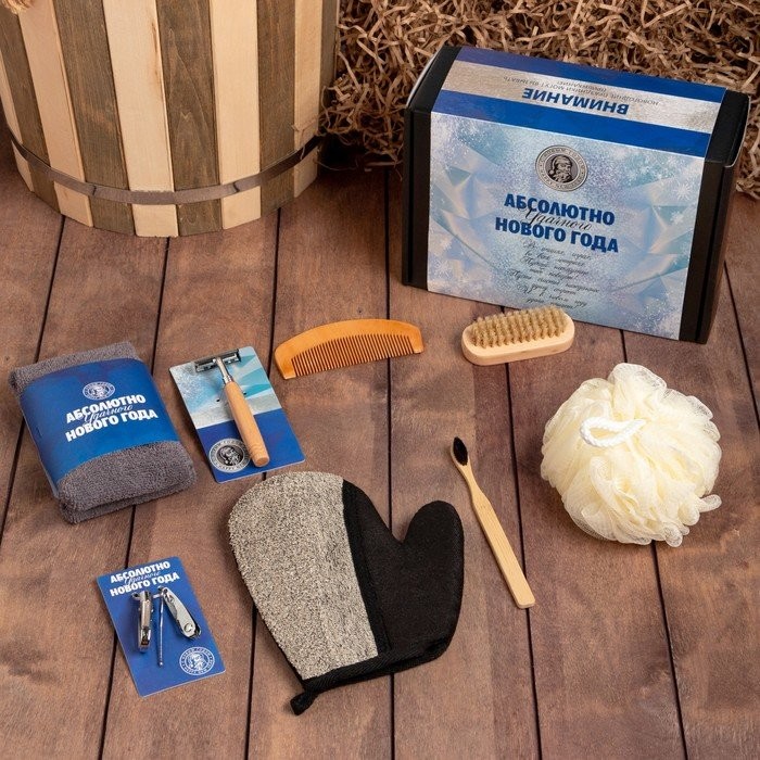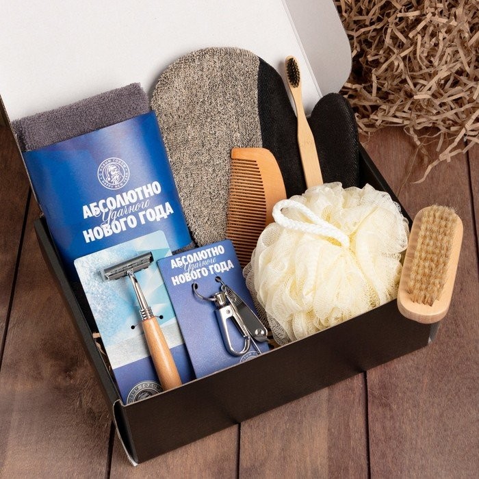 Мочалка для тела, мочалка-варежка, станок бритвенный, зубная щётка, щетка, брелок маникюрный, полотенце махровое 30х60см, расческа 13*5 см