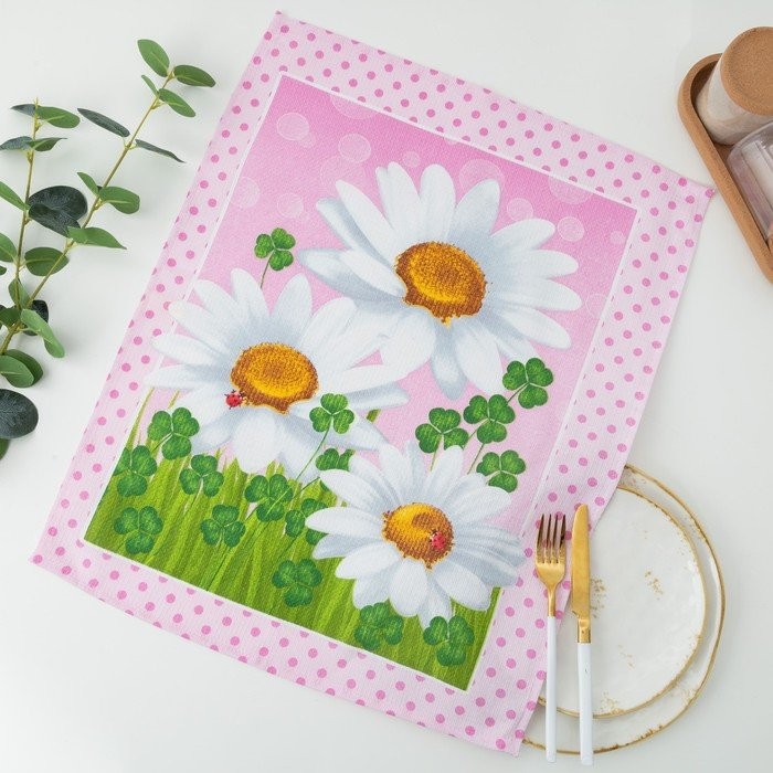 Набор полотенец в пакете Букетики 45×60 см, 3 шт, розовый, вафля, 170 гр/м2, хлопок 100%