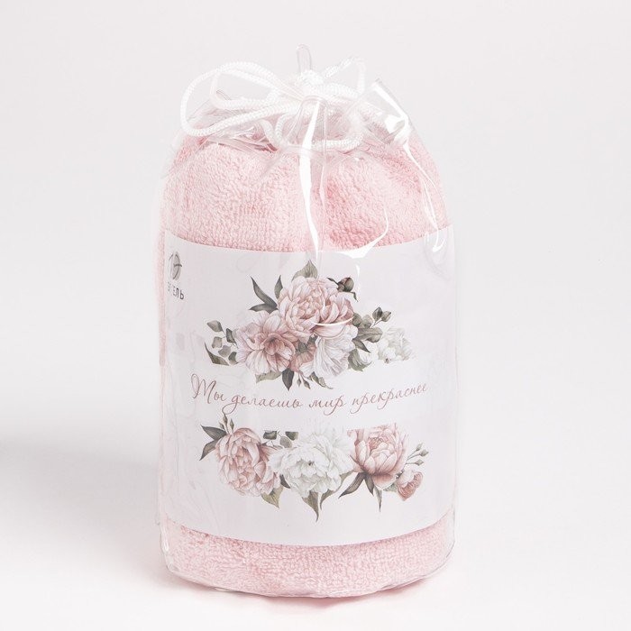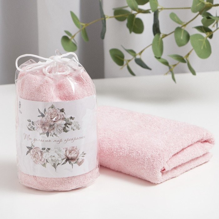 Полотенце подарочное Этель «Ты делаешь мир прекраснее» св-розовый, 50х90см, 100%хл,340г/м2