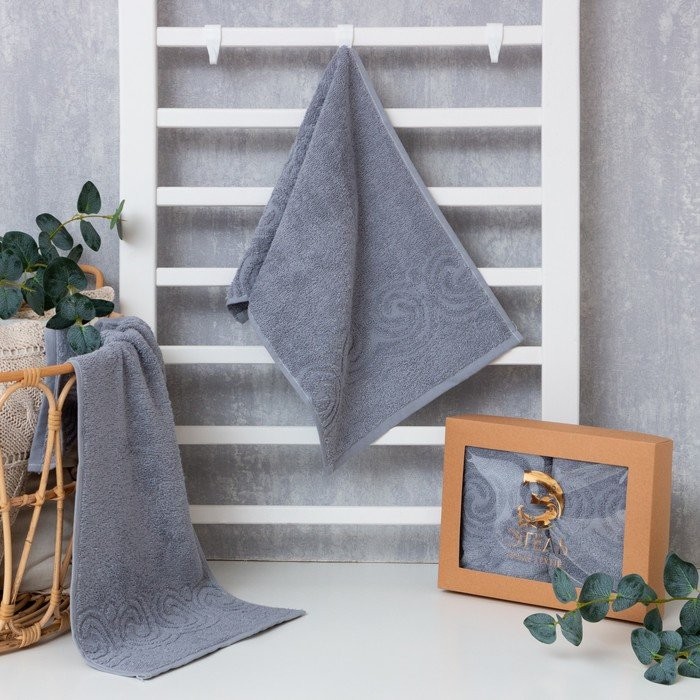 Набор полотенец Этель «Present» 30*60см — 2шт, цв.серый, 100% хлопок, 360 г/м2