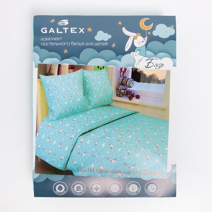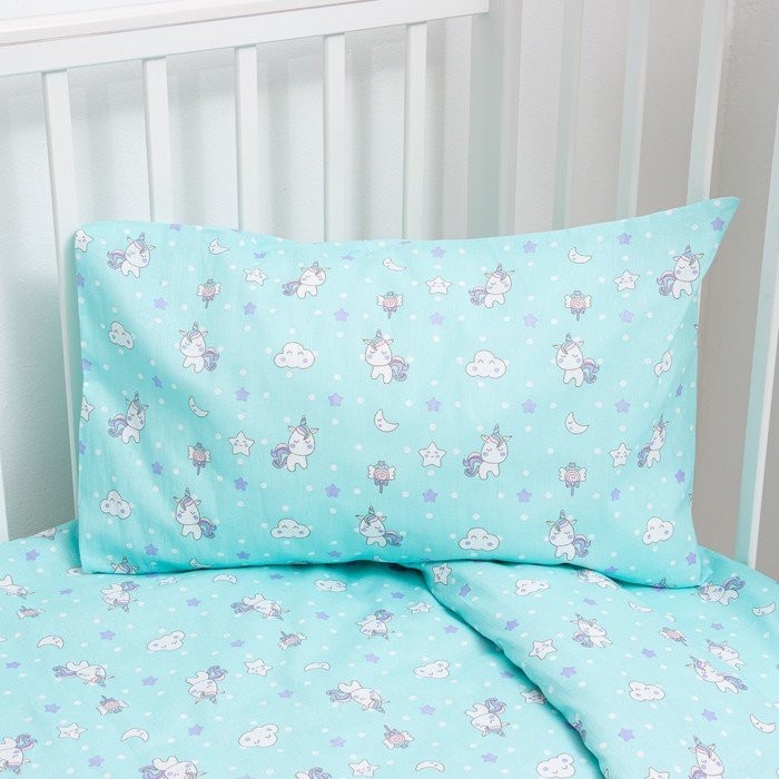 Постельное бельё детское «Единорожки», цвет бирюзовый, 112×147, 100×150, 40×60 1 шт, бязь, хл100 120 г/м